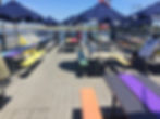 Mobys is 100% outdoor dining restaurant. It is counter pickup service and seat yourselves on our water front deck.
